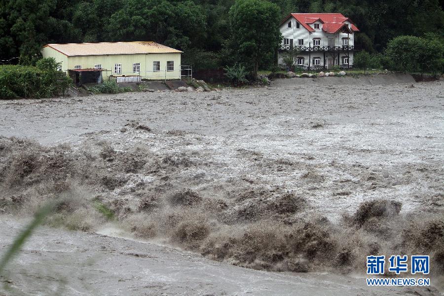 6月12日,臺(tái)灣中部橫貫公路旁的大甲溪河水暴漲,危及岸邊住戶。受西南氣流影響,臺(tái)灣中南部近日遭受暴雨或特大暴雨襲擊,造成道路中斷、農(nóng)作物受損嚴(yán)重。 新華社發(fā)