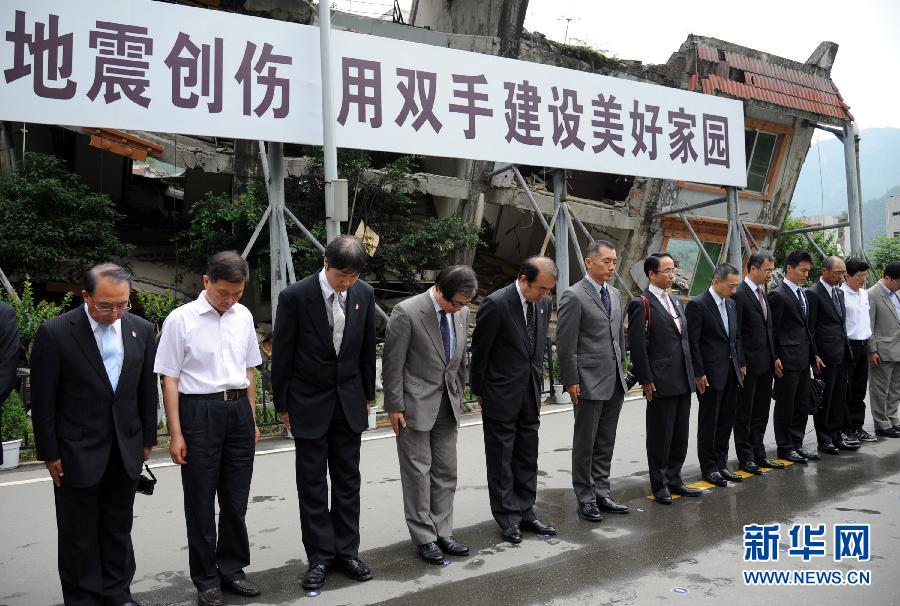 和救援隊隊員代表一行15人在北川老縣城緬懷地震遇難者。當(dāng)日,日本國際醫(yī)療隊和救援隊隊員代表一行15人探訪了汶川地震極重災(zāi)區(qū)北川縣,緬懷遇難者,感受災(zāi)后不一樣的北川。他們將在四川災(zāi)區(qū)進(jìn)行3天的交流訪問。這也是日本醫(yī)療隊、救援隊結(jié)束支援汶川地震災(zāi)區(qū)工作后,首度回訪四川震區(qū)。 “5·12”汶川特大地震發(fā)生后,日本先后派出31人的國際緊急救援隊、23人的國際醫(yī)療隊分赴四川,參與當(dāng)?shù)鼐葹?zāi)。 新華社發(fā)
