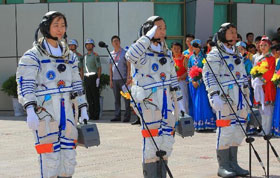 6月18日,神九航天員進(jìn)入天宮一號(hào)(視頻截圖)。 新華社發(fā)