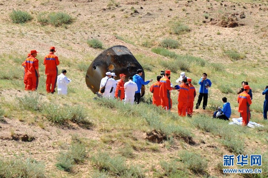 6月29日,地面搜索人員接近返回艙進(jìn)行開艙處置。