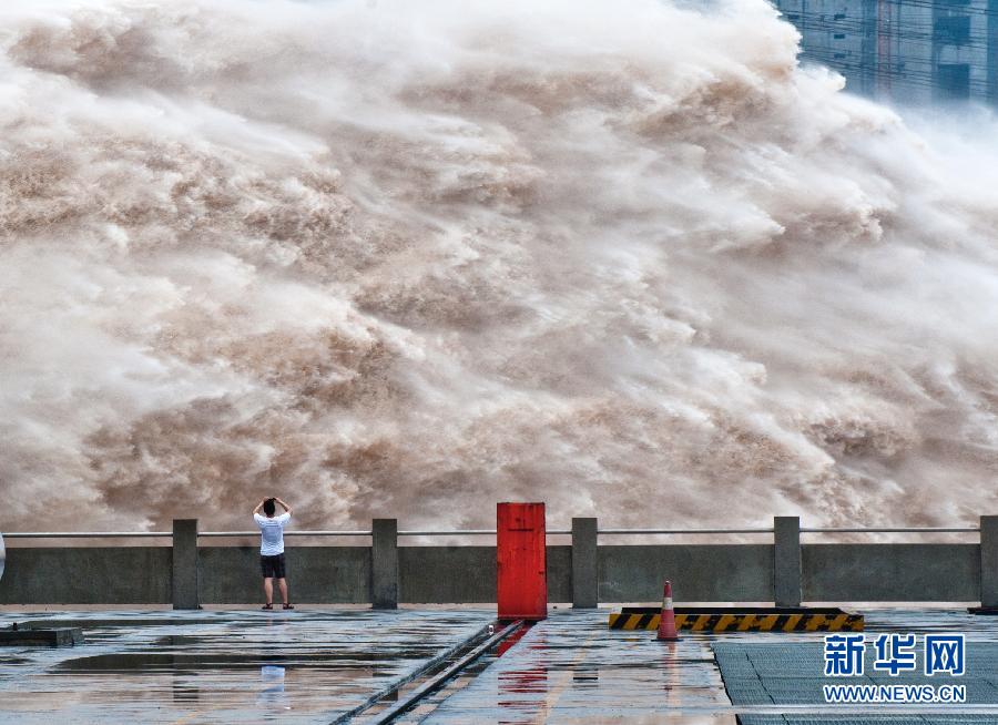 7月5日,三峽大壩開(kāi)啟三個(gè)泄洪深孔進(jìn)行泄洪。當(dāng)日上午,通過(guò)三峽的洪水規(guī)模顯著加強(qiáng),長(zhǎng)江上游來(lái)水流量增至每秒5.5萬(wàn)立方米,達(dá)到并超過(guò)此前預(yù)計(jì)的最大峰值。5日上午,三峽水庫(kù)水位漲至146.8米以上,較前一日上漲1.4米。新華社記者肖藝九攝