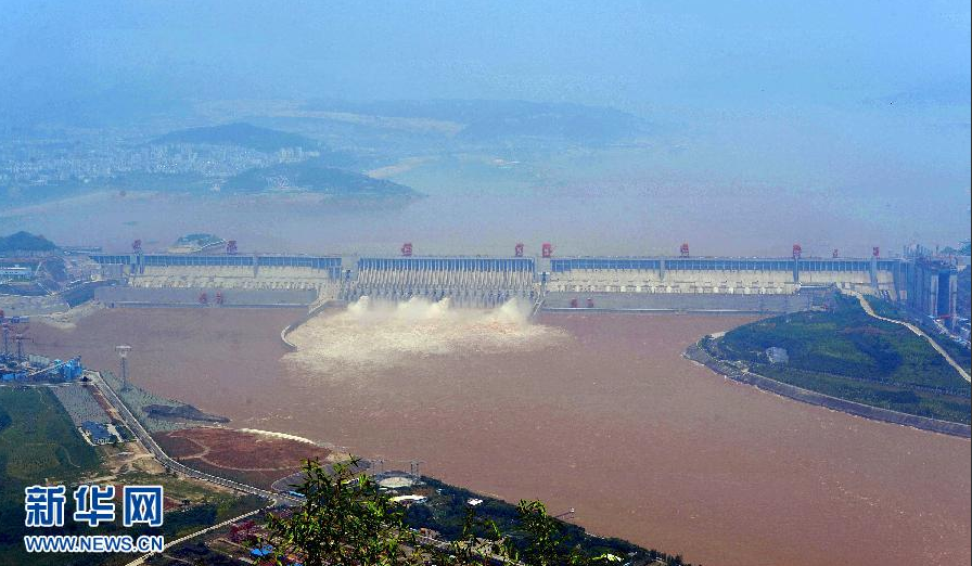 7月7日,三峽大壩開(kāi)啟4個(gè)泄洪深孔泄洪。當(dāng)日,形成于長(zhǎng)江上游的2012年“1號(hào)洪峰”抵達(dá)三峽水域,流量高達(dá)每秒5.6萬(wàn)立方米,創(chuàng)今年汛期來(lái)水新高。洪峰到來(lái)時(shí),三峽樞紐積極攔蓄洪水,水庫(kù)水位漲幅明顯,7日上午漲至151米以上,高出防洪限制水位6米,創(chuàng)今年汛期水位新高。新華社發(fā)(鄭家裕 攝)