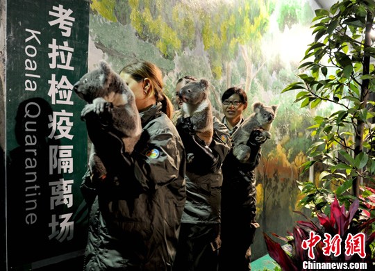 1月21日晚,3只經過選拔的考拉“新人”從澳大利亞昆士蘭州的柯拉姆賓動物園啟程,乘飛機抵廣州白云國際機場,隨后被送往廣州長隆野生動物世界。中新社發(fā) 劉衛(wèi)勇 攝