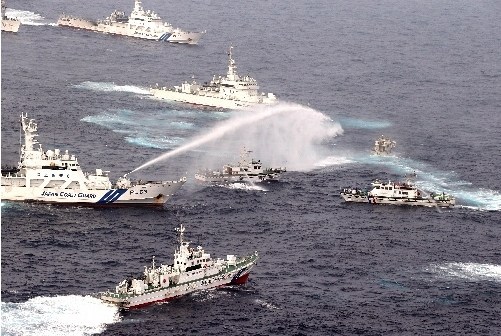 日本《朝日新聞》,北京時(shí)間10時(shí)45分,日本海上保安廳8艘巡視船對(duì)保釣船“全家福”號(hào)和護(hù)送該船的臺(tái)灣“海巡署”巡邏船展開水炮攻擊。從照片上可見,臺(tái)灣巡邏船也使用水炮對(duì)日本船只進(jìn)行回?fù)簟?