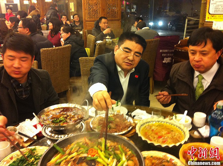 1月25日晚,江蘇黃埔再生資源利用有限公司董事長陳光標率領其公司40名員工來到南京街頭一飯店吃剩飯、剩菜。在出發(fā)前,陳光標不僅給員工開了“動員大會”,還給每個員工發(fā)了一雙筷子,并強調:“說百遍不如做一遍”。陳光標表示,從明天開始其公司食堂不燒晚飯,鼓勵員工走上街頭飯店吃剩飯、剩菜,希望能夠以點帶面,讓更多人節(jié)約糧食和水電。黃鸝攝