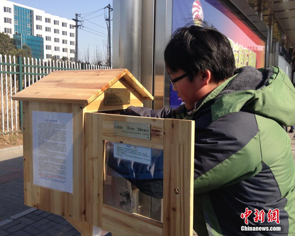 1月21日,無錫錫山區(qū)天一中學(xué)門前的公交站臺邊的“無錫1號鳥巢圖書館”又迎來了一批熱心的讀者,這些讀者來這里,為的是拿家中的書換取該圖書館中的其他書籍。據(jù)了解,這個無人值守的“無錫1號鳥巢圖書館”是由天一中學(xué)年輕的化學(xué)女老師師素方一手創(chuàng)辦,讀者讀、取自由,如果讀者想要拿走其中的圖書,只需要拿自己的書前來置換即可。今后,師素方還想把這個圖書館推廣到無錫全市。圖為一位等候公交車的市民在翻看讀書。洪曉紅 攝