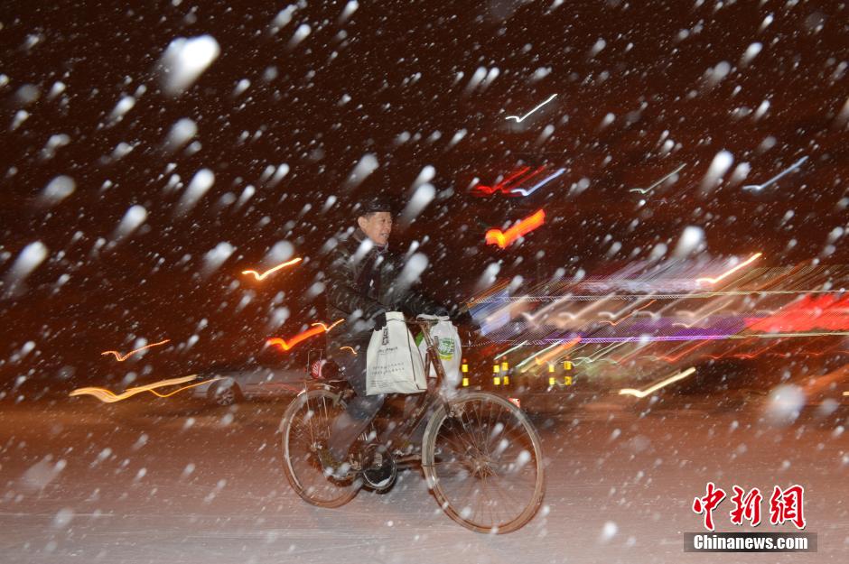 2月4日晚,山西太原迎來冬春之交首場降雪,民眾冒雪出行。中國中央氣象臺當(dāng)日預(yù)報,受一股寒潮影響,強(qiáng)冷空氣繼續(xù)影響中東部地區(qū),該地區(qū)將出現(xiàn)大范圍雨雪天氣,局地將有暴雪。中新社發(fā) 韋亮 攝