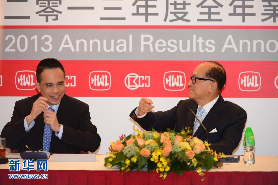 2月28日,長(zhǎng)和系主席李嘉誠(chéng)(右)和長(zhǎng)子李澤鉅在業(yè)績(jī)發(fā)布會(huì)上回答記者提問。當(dāng)日,李嘉誠(chéng)旗下長(zhǎng)和系公布2013年業(yè)績(jī)。李嘉誠(chéng)在集團(tuán)業(yè)績(jī)發(fā)布會(huì)上說,當(dāng)前世界投資環(huán)境復(fù)雜,目前無意退休,仍有很多事情未做,并在處理基金會(huì)及醫(yī)療等方面的工作。新華社記者 秦晴 攝