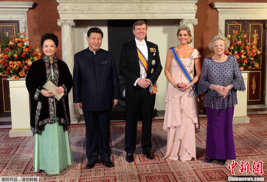 當?shù)貢r間3月22日,荷蘭阿姆斯特丹王宮,習近平主席和夫人彭麗媛身著中式服裝,出席威廉-亞歷山大國王舉行的盛大國宴。