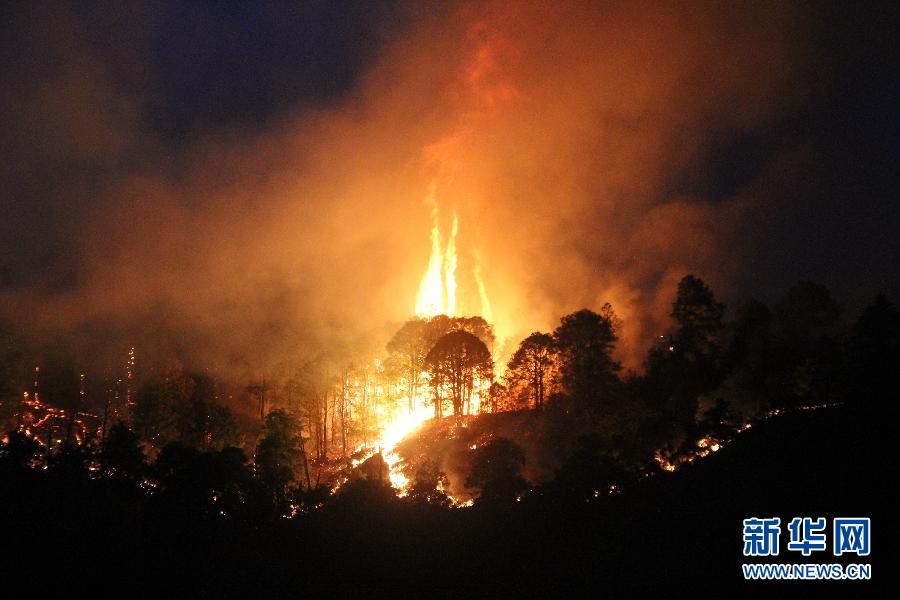 4月18日晚,一處火場(chǎng)火勢(shì)沖天。據(jù)昆明市森林防火指揮部通報(bào),截至18日19時(shí)30分,始發(fā)于西山區(qū)團(tuán)結(jié)街道辦棋臺(tái)社區(qū)的森林火災(zāi),火場(chǎng)西線、北線、東線(西山區(qū)境內(nèi))明火已撲滅,正在進(jìn)行余火清理;目前火場(chǎng)東南線和南線有斷續(xù)火線,火勢(shì)中等,火場(chǎng)有4700余人正全力撲救。初步統(tǒng)計(jì)過(guò)火面積約134公頃。新華社發(fā)(龔龑攝)
