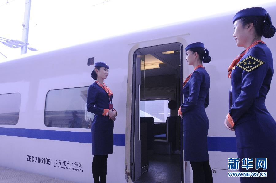 10月17日,在青海門源縣浩門站,列車長鄭媛媛(右)和兩名乘務員站在蘭新高鐵青海段CRH2試驗型動車組旁邊。當日,蘭新高鐵青海段完成了動車組逐級提速試驗,順利進入信號系統(tǒng)聯(lián)調聯(lián)試階段,為年底全線通車做準備。蘭新高鐵全長1776公里,是連接甘肅、青海、新疆三省區(qū)的現(xiàn)代“鋼鐵絲綢之路”,今年年底有望全線建成通車。屆時我國西部將形成一條新的快速鐵路運輸通道,從甘肅蘭州到新疆烏魯木齊可實現(xiàn)朝發(fā)夕至,青藏高原將告別無高鐵的歷史,大大提升亞歐大陸橋鐵路通道的運輸能力,在促進甘、青、新三省區(qū)的經濟發(fā)展中發(fā)揮重要作用 新華社記者曹婷攝