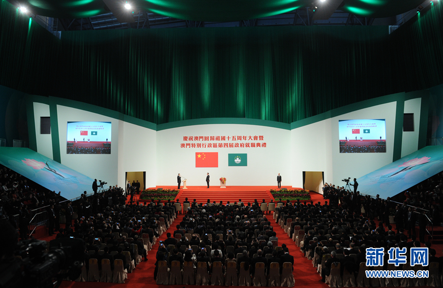 新華網(wǎng)快訊:由國(guó)家主席習(xí)近平監(jiān)誓,澳門特別行政區(qū)第四任行政長(zhǎng)官崔世安宣誓就職。