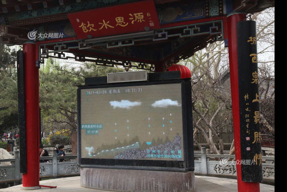3月20日,濟(jì)南趵突泉天尺亭水位檢測(cè)儀顯示,趵突泉實(shí)時(shí)水位只有27.57米,已跌破27.6米紅色警戒線,意味著泉水面臨停噴危險(xiǎn)。據(jù)了解,濟(jì)南市水利和市政公用部門正在采取回灌補(bǔ)源、節(jié)水檢查、嚴(yán)查私采地下水等措施來(lái)保障泉水的持續(xù)噴涌。大眾網(wǎng)記者 王長(zhǎng)坤 攝