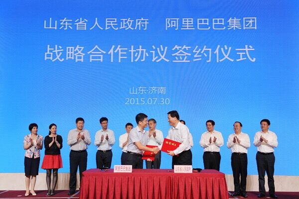 大眾日?qǐng)?bào)訊 7月30日下午,山東省人民政府與阿里巴巴集團(tuán)在濟(jì)南簽署戰(zhàn)略合作框架協(xié)議。山東省將成為阿里巴巴戰(zhàn)略發(fā)展的重點(diǎn)地區(qū),雙方在跨境電子商務(wù)、農(nóng)村電子商務(wù)、人才培訓(xùn)、云計(jì)算和大數(shù)據(jù)、互聯(lián)網(wǎng)各領(lǐng)域的應(yīng)用開展深入合作,推動(dòng)山東全面提升產(chǎn)業(yè)競(jìng)爭(zhēng)力,增強(qiáng)產(chǎn)業(yè)可持續(xù)發(fā)展能力,共同開創(chuàng)山東互聯(lián)網(wǎng)經(jīng)濟(jì)新局面。協(xié)議簽署前,山東省委書記姜異康會(huì)見了阿里巴巴集團(tuán)董事局主席馬云一行。姜異康在會(huì)見時(shí)對(duì)阿里巴巴集團(tuán)十六年來(lái)取得的驕人成績(jī)給予高度評(píng)價(jià),并表示,山東對(duì)與阿里巴巴集團(tuán)的合作充滿了期待和信心,全力支持阿里巴巴各個(gè)項(xiàng)目在山東的推進(jìn),共同打造山東經(jīng)濟(jì)發(fā)展的新引擎。