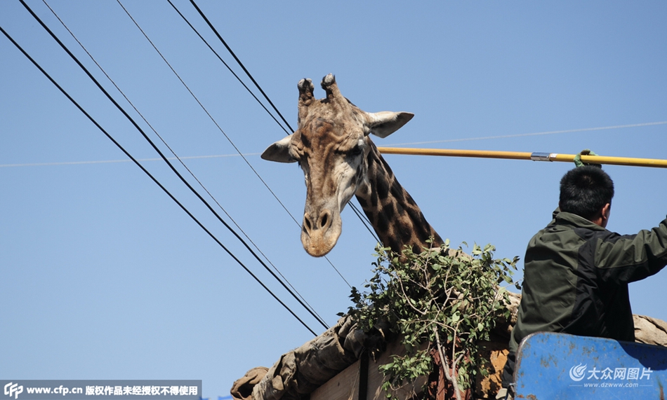 2015年10月9日,濟南野生動物世界的8歲長頸鹿常青搬家。它坐上大卡車從700多米的山上老宅,一口氣搬到七八十公里外位于章丘市的新家。