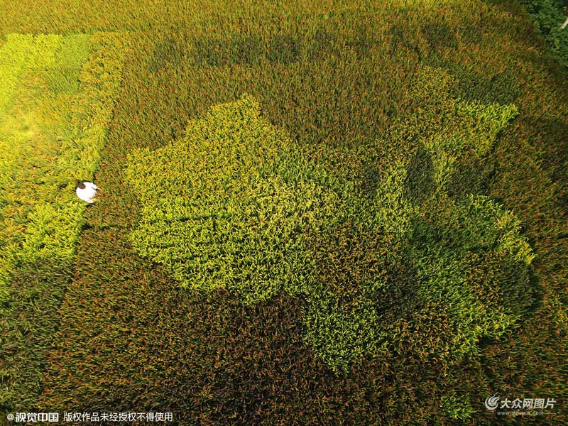 2015年10月13日,上海金山區(qū)楓涇鎮(zhèn)中洪村的一片水稻田中出現(xiàn)了一幅“中國地圖”及一張“彩色地毯”,這是71歲的陳錦祥老人用彩色水稻種出來的作品。據(jù)悉,陳錦祥退休前是楓涇鎮(zhèn)農(nóng)技站的工作人員,研究水稻已有30多年。他利用自家承包田搞稻種培育試驗(yàn),用800多種實(shí)驗(yàn)樣本培育出30多種不同顏色、形態(tài)各異的水稻。中國地圖是他的最新作品,“彩色地毯”則是他的彩稻試驗(yàn)田。