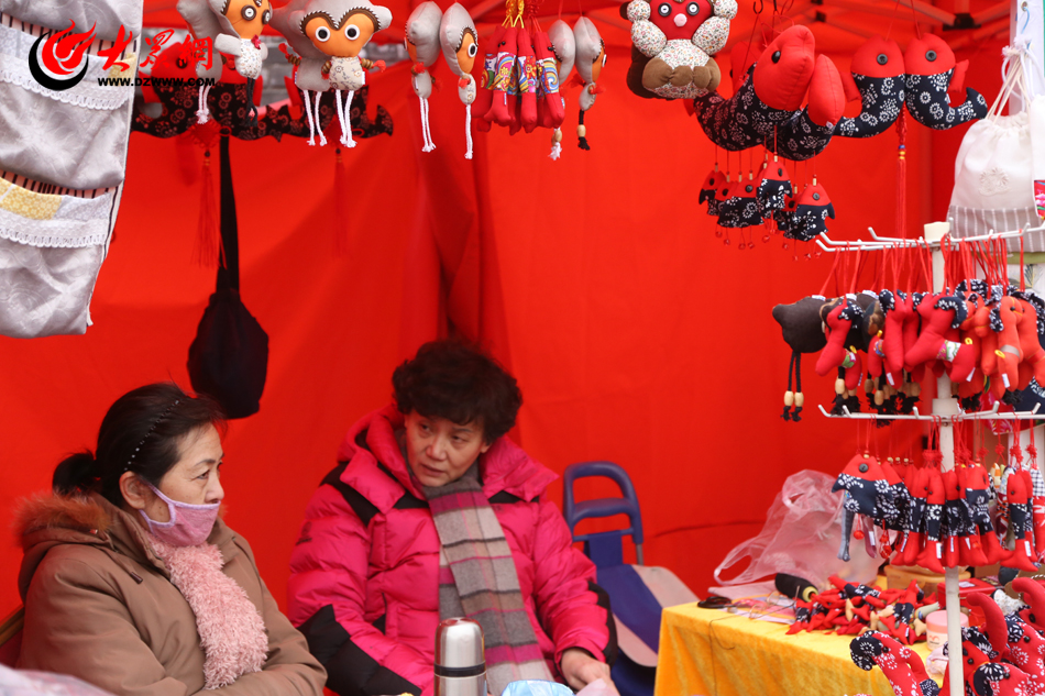 濟(jì)南寬厚里,布偶攤的兩名攤主正在閑聊。(亓翔 攝)