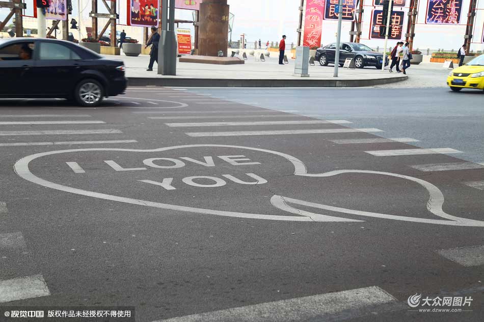 2015年3月3日,重慶街頭現(xiàn)“I LOVE YOU”愛心斑馬線。