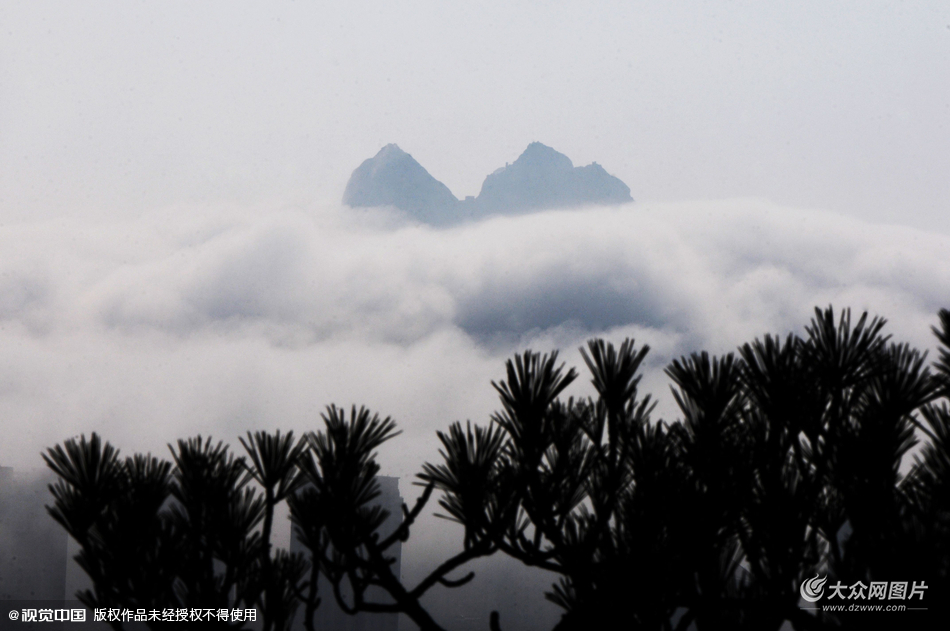 2016年03月04日,山東省青島市,午后,嶗山區(qū)出現(xiàn)平流霧景觀,沿海一帶樓宇陷入霧靄之中,仿如海市蜃樓。據(jù)了解,平流霧的形成為陸地與海洋的溫差造成,當(dāng)日青島氣溫飆升至8℃-11℃,因而形成難得一見(jiàn)的平流霧。