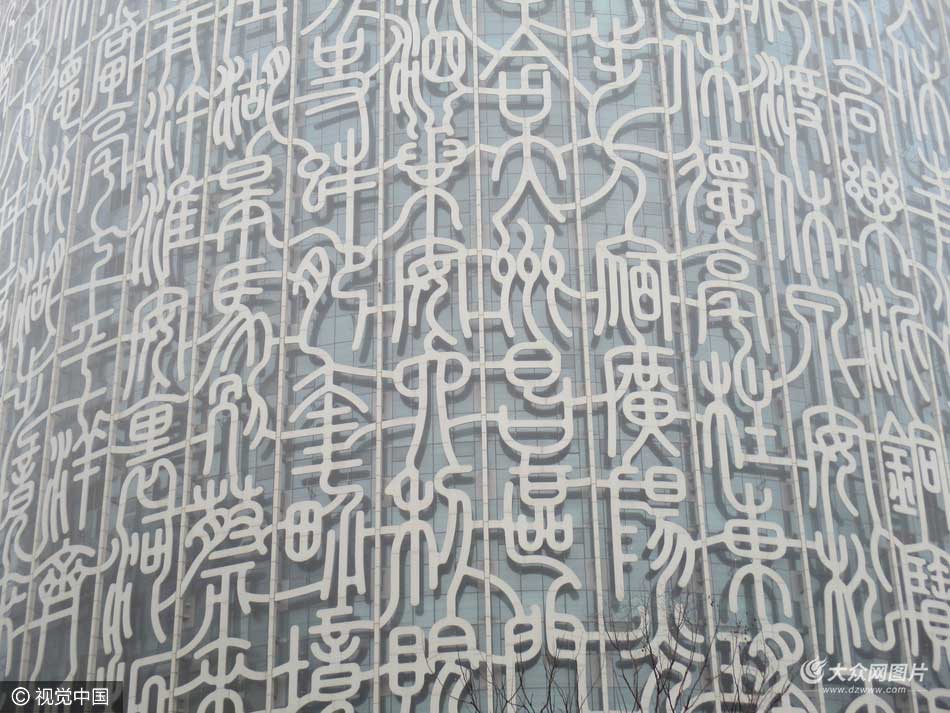 2016年3月8日,安徽合肥,一大樓被“篆書”包圍,遠(yuǎn)遠(yuǎn)望去,別有一番特色,然而,這上面的字很多市民表示“不認(rèn)識(shí)”,被稱“天書”。