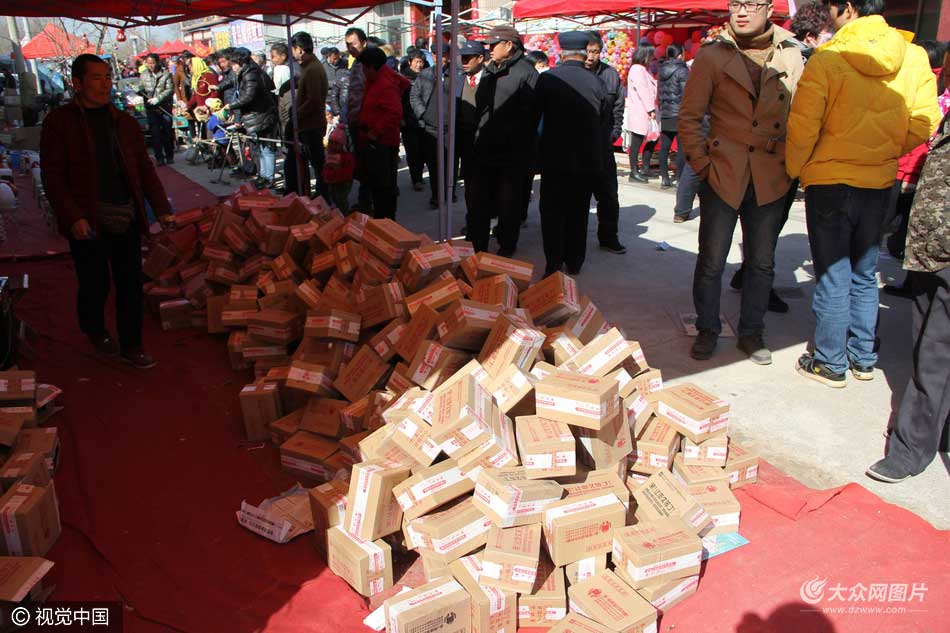 2016年3月10日,山東惠民,村民在廟會(huì)上爭(zhēng)相購(gòu)買10一個(gè)的“淘寶快件”。當(dāng)日,在山東省惠民縣皂戶李鎮(zhèn)火把李村“泥娃娃廟會(huì)”上,一男子叫賣所謂的“淘寶無(wú)主快遞包裹”,10元一件,隨意挑選,聲稱商品包括手機(jī)、配件、手表、平板電腦等,拆開(kāi)不退,先交錢再拆封,引發(fā)不少市民搶購(gòu)。