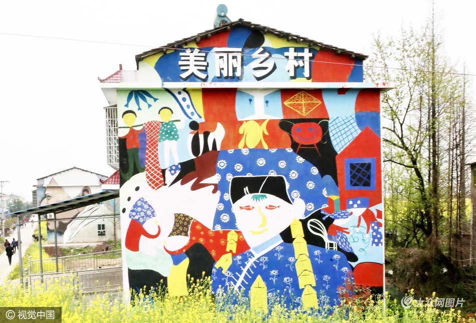 2016年03月14日,湖南省益陽市,南縣烏嘴鄉(xiāng)羅文村對本村連片的100多棟民居墻體進行彩繪,建成了湖南首個“涂鴉村莊”。