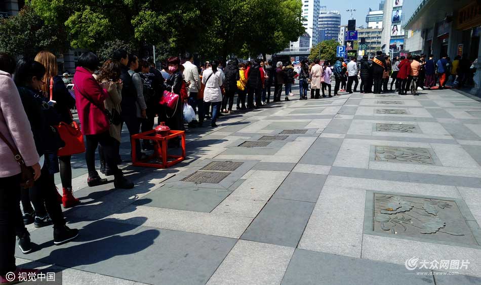 2016年03月28日,浙江省金華市,受國際金價的影響,黃金價格在短期震蕩之后就展開了下跌,已經(jīng)破位前期低點關(guān)鍵支撐,黃金價格持續(xù)走低。金華部分黃金經(jīng)營商家實時推出優(yōu)惠折扣,特別推出和猴年有關(guān)的黃金產(chǎn)品。當?shù)蛢r優(yōu)惠來臨,不少市民果斷出手,在街頭排起了長隊購買黃金。