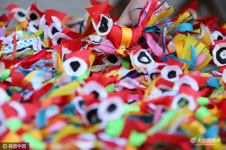 2017年01月14日,山東省棗莊市,農(nóng)歷雞年臨近,山東省棗莊市的民間手工藝人忙著用彩色棉布、棉線和棉花縫制“春雞”在街頭售賣(mài),迎雞年盼“立春”。