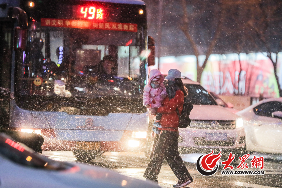 2月21日晚,山東濟(jì)南迎來(lái)今春首場(chǎng)降雪,街頭道路和建筑被大雪覆蓋,市民在飛舞的大雪中冒雪前行。當(dāng)日,省氣象臺(tái)下午3點(diǎn)發(fā)布暴雪黃色、道路結(jié)冰橙色預(yù)警信號(hào)并繼續(xù)發(fā)布寒潮藍(lán)色預(yù)警信號(hào)。大眾網(wǎng)記者 王長(zhǎng)坤 攝