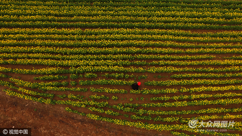 2017年4月7日,航拍山東東營市墾利區(qū)黃河大橋邊油菜花披上“金色外衣”,場面十分壯觀。日前,該區(qū)500畝油菜正值盛花期,連綿不絕的油菜花競相開放,景色十分壯觀。