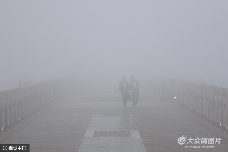 2017年4月7日,山東省煙臺市出現(xiàn)平流霧,島嶼、建筑、街道在霧中若隱若現(xiàn),宛若仙境。