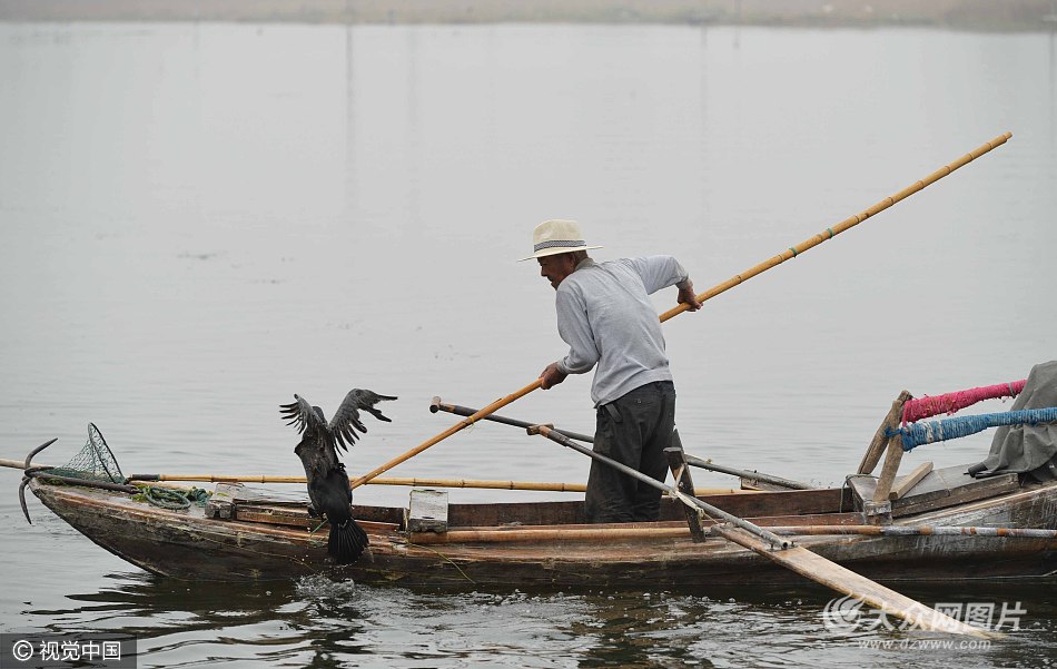 2017年4月7日,河北雄安新區(qū)安新縣白洋淀望月島居民用最傳統(tǒng)的魚鷹方式捕魚。望月島是個只有二萬多平方米的小島,島上僅有19戶人家。望月島對于習慣了大都市生活人們來說是那么的寂寞,去往望月島沒有陸路,只能坐船前往,冬天湖面冰封的時候,一般乘坐電動的爬犁。