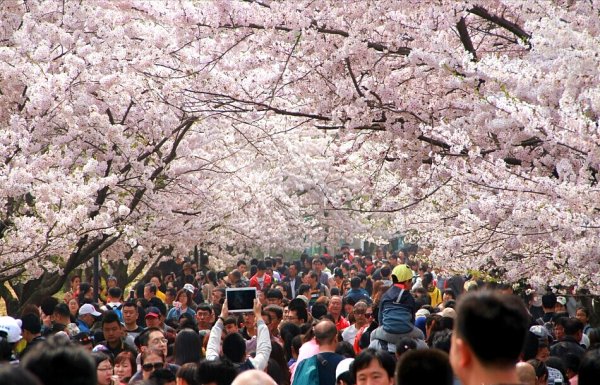 青島賞花會啟幕 大學(xué)生著漢服穿越花季