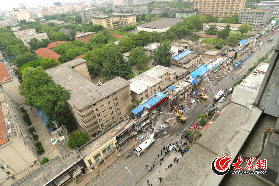 每座城市都有一條大學(xué)路,在山東省會(huì)濟(jì)南最出名的就是山師東路了。4月24日,大眾網(wǎng)記者來到經(jīng)十路與山師東路交叉口附近,沿街商鋪已經(jīng)開始拆除。山師東路全長(zhǎng)1880米,經(jīng)營(yíng)業(yè)戶264家,違建面積3萬平方米。拆除后,將“還路于民,建綠透綠”。 濟(jì)南最出名的大學(xué)路商業(yè)街,在戀戀風(fēng)塵中就此落幕。大眾網(wǎng)記者 王長(zhǎng)坤 攝