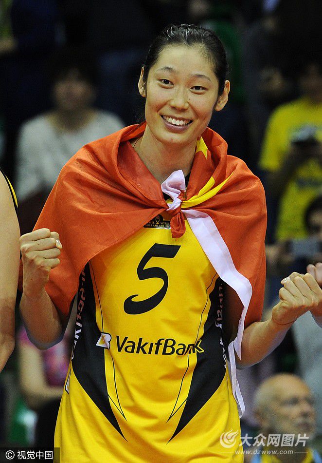 2017年4月23日,意大利特雷維索,2017女排歐冠聯(lián)賽,瓦基弗銀行奪冠,朱婷隨隊(duì)加冕身披國(guó)旗慶祝。
