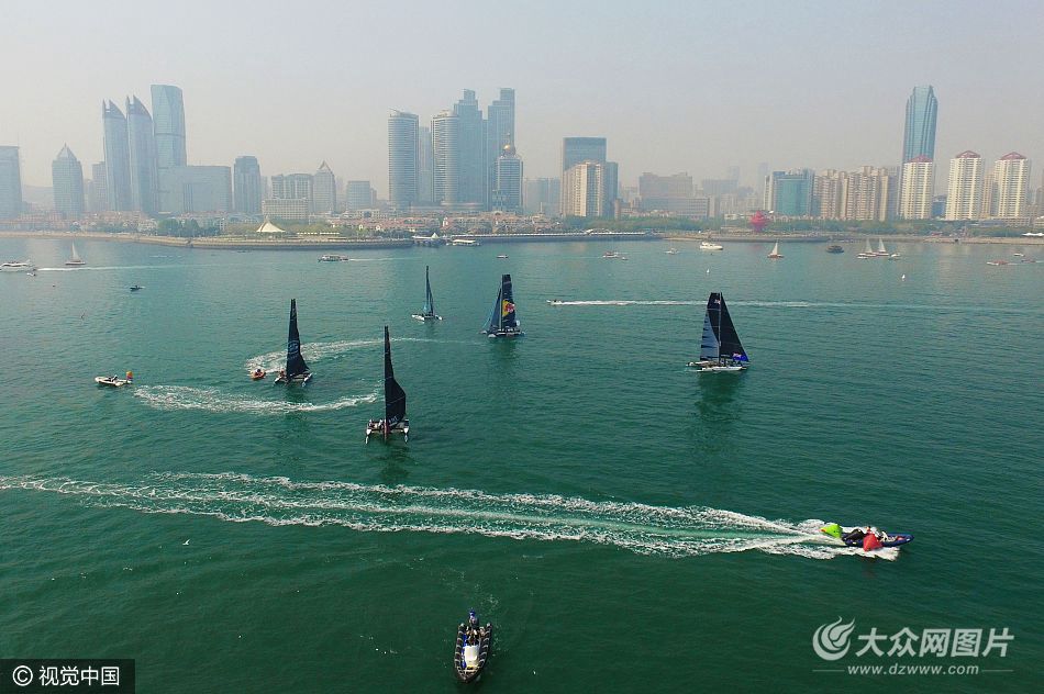 2017年4月29日,五一小長假首日,在山東省青島市奧帆中心海域2017國際極限帆船內(nèi)港賽上演揚帆競速好戲,浮山灣畔帆影如林,大秀帆船之都美景,吸引了眾多攝影愛好者和游客圍觀。