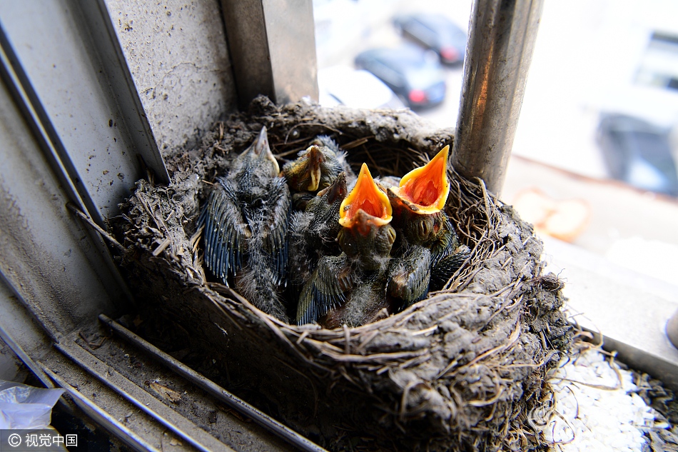 2017年5月3日,江蘇海安高新區(qū)機關(guān)辦公樓三樓一后窗臺上,傳出輕微的嘰嘰嘰的連續(xù)叫聲。