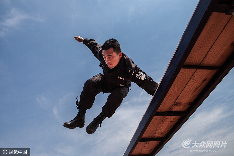 2017年5月3日,山東德州,記者走進(jìn)公安訓(xùn)練基地體驗(yàn)特警訓(xùn)練。