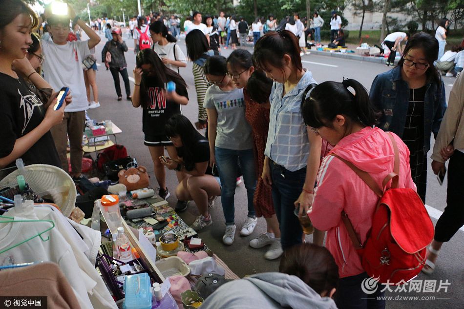 2017年5月15日,畢業(yè)季即將來臨,山東財(cái)經(jīng)大學(xué)“跳蚤市場(chǎng)”熱鬧開市,畢業(yè)生紛紛將自己閑置物品擺放在市場(chǎng)中售賣,商品標(biāo)語(yǔ)千奇百怪,成為跳蚤市場(chǎng)一獨(dú)特風(fēng)景。