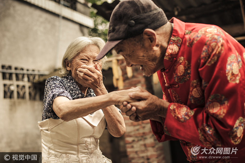 2012年8月22日,四川眉山市仁壽縣慈航鎮(zhèn)大塘村,攝影師為眉山市唯一一對百歲夫妻楊志昌、楊淑芝拍攝結(jié)婚照。