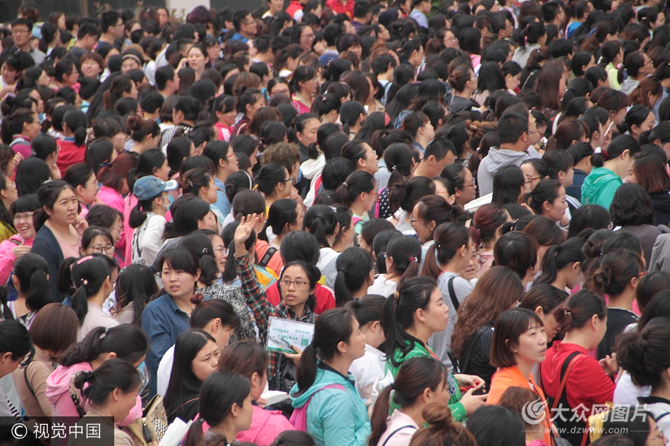 2017年5月20日,在山東省青島市九水東路上的恒學學院考點,萬名考生排隊入場猶如千軍萬馬過獨木橋,場面甚是壯觀。圖為當天上午在青島恒星學院考點內(nèi)排隊進入考場的考生。