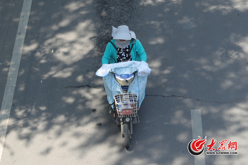 15月27日,濟(jì)南迎來新一輪的高溫天氣,在烈日的灸烤下,外出的市民紛紛想出各式奇招遮陽降溫。據(jù)濟(jì)南市氣象局發(fā)布的消息,26日,發(fā)布今年首個(gè)高溫黃色預(yù)警信號(hào),27-29日濟(jì)南大部分地區(qū)最高氣溫可達(dá)35-36 ,市區(qū)、章丘、濟(jì)陽的部分地區(qū)最高氣溫可達(dá)37℃。圖為市民“全副武裝”在高溫下騎車出行。大眾網(wǎng)記者 王長坤 攝
