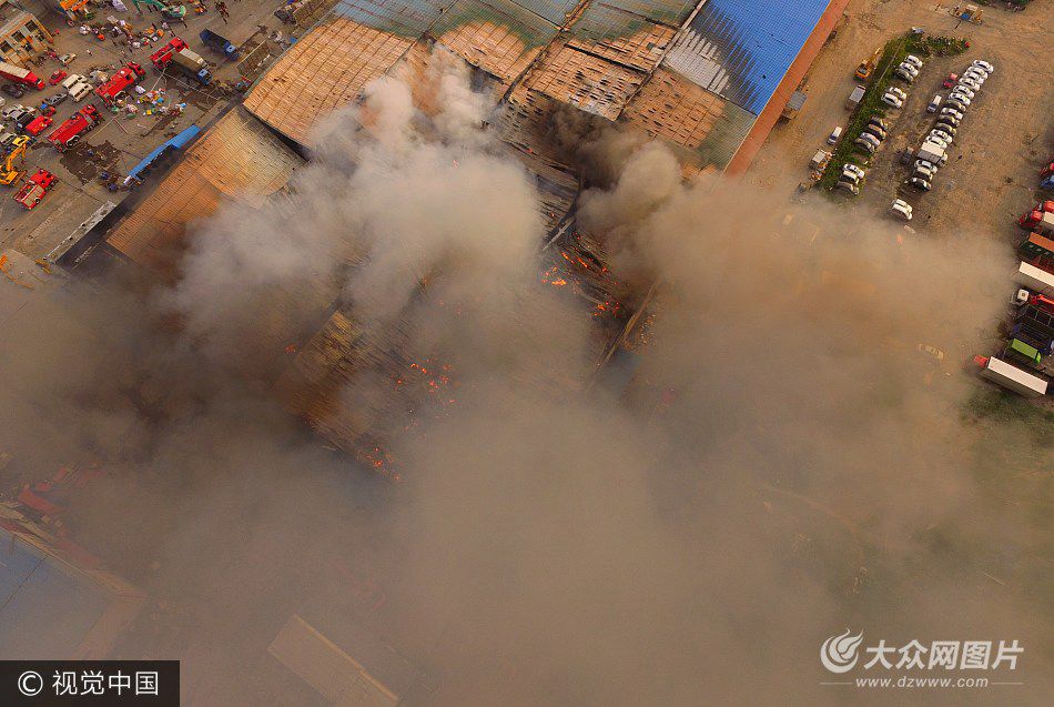 2017年7月9日下午5時左右,濟南北部大橋路物流中心一倉庫發(fā)生火災(zāi)。這是零點國際商貿(mào)物流港的一個大型倉庫,現(xiàn)場濃煙滾滾大火沖天,大批消防車趕來滅火,到晚上7點大火依舊在燃燒。