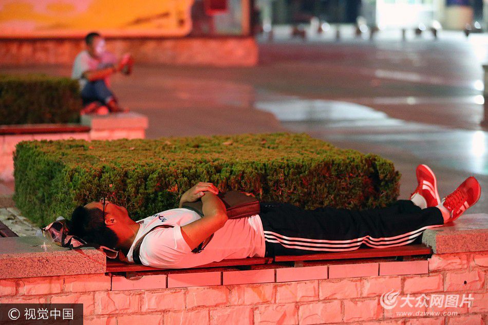 2017年7月10日,山東省濰坊市,“露宿者”在濰坊火車站廣場席地而眠。連日來,山東省濰坊市區(qū)遭遇到了高溫天氣,每天晚上濰坊火車站廣場都有許多來此納涼露宿的人,這些人一部分是準(zhǔn)備乘坐第二天早上火車的旅客,為了節(jié)省路費沒有住在旅館,另一部分則是一些住所條件簡陋的外來務(wù)工者,他們在廣場上鋪上涼席,或是直接躺在地板上睡覺,躲避高溫天氣的洗禮。