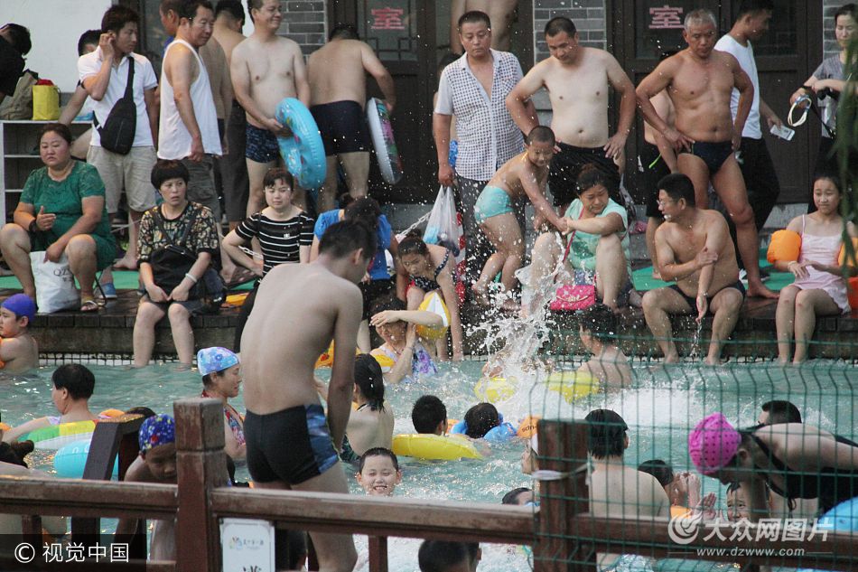 2017年7月12日傍晚,在濟(jì)南解放閣旁的免費(fèi)泉水浴場(chǎng),里面人滿為患如同“下餃子”,外面眾多市民在門外排隊(duì)苦等進(jìn)入游泳,現(xiàn)場(chǎng)十分壯觀。