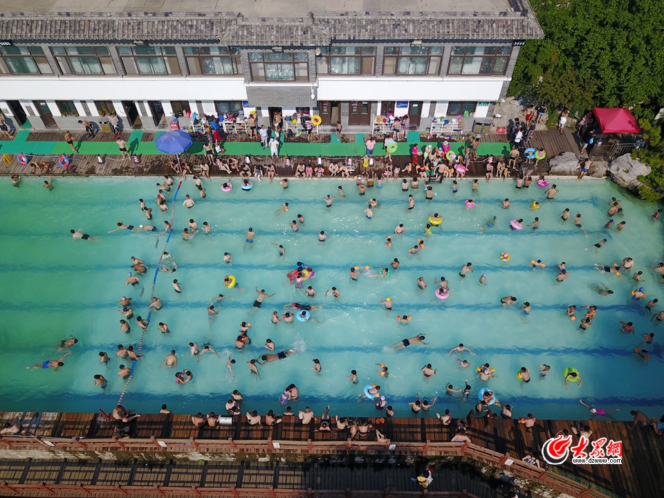 大眾網(wǎng)濟(jì)南7月13日訊 13日,濟(jì)南持續(xù)高溫,位于黑虎泉附近的濟(jì)南泉水浴場(chǎng)聚集了大量來(lái)此游泳的市民和游客。從高空俯瞰,游泳池里全是人。(大眾網(wǎng)-山東24小時(shí)客戶(hù)端記者 王長(zhǎng)坤)