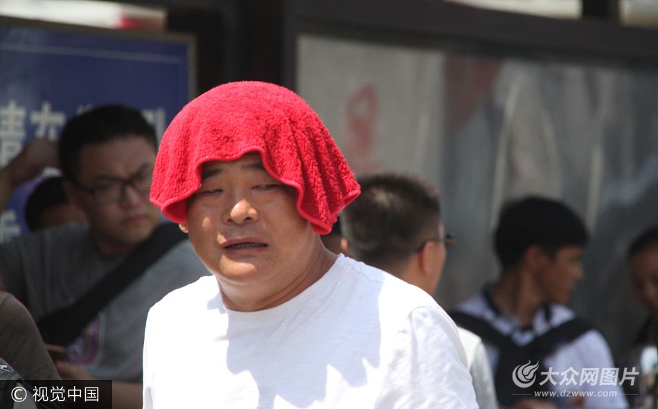 2017年7月13日,濟(jì)南持續(xù)高溫天氣,旅客上演“防曬眾生相”。