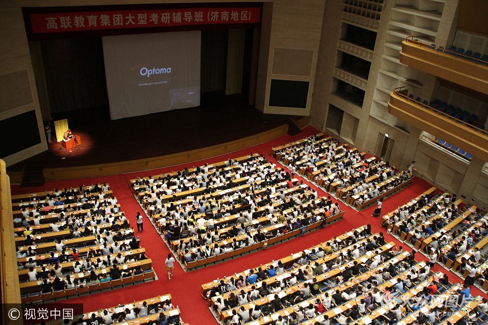 2017年7月20日上午,在山東濟(jì)南山東會堂內(nèi),2000名大學(xué)生考研族聽一個老師上大課,現(xiàn)場場面十分壯觀。為了緩解考研壓力,在休息時(shí)間培訓(xùn)機(jī)構(gòu)專門請來雜技、熱舞、明星等來緩解壓力。