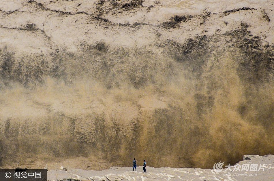 2017年7月27日下午,山西、陜西大峽谷之間的黃河壺口瀑布,奔騰咆哮、氣勢(shì)磅礴。當(dāng)日,受黃河中游晉陜兩省中北部大范圍降雨及暴雨天氣影響,黃河壺口段迎來(lái)今年最大洪峰,為保障游客游覽安全,壺口瀑布景區(qū)采取暫時(shí)關(guān)閉措施。