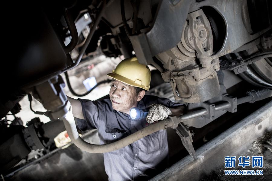 7月30日,在武漢武昌客運機車整備場檢修庫房,51歲的電力機車鉗工吳衛(wèi)兵在機車底部進行檢查維護。當日,武漢武昌客運機車整備場上熱浪滾滾,十多名機車檢修人員在蒸籠般的庫房內,對每臺機車的車頂、機械室和車底進行檢查作業(yè)。這是武漢鐵路局武昌南機務段武昌整備車間職工工作場景,他們主要負責武昌火車站到達的客運機車入庫后的全方位檢查和保養(yǎng),確保每臺機車“健康”上線。入伏以來,武漢地區(qū)持續(xù)高溫,檢修庫房溫度普遍要比室外溫度高出近10℃,又值暑運,這個車間的整備任務非常重。修完一輛,送走一輛,又來一輛,他們剛把身上的汗水晾干,又繼續(xù)下一輛機車的整備作業(yè)。新華社記者肖藝九攝
